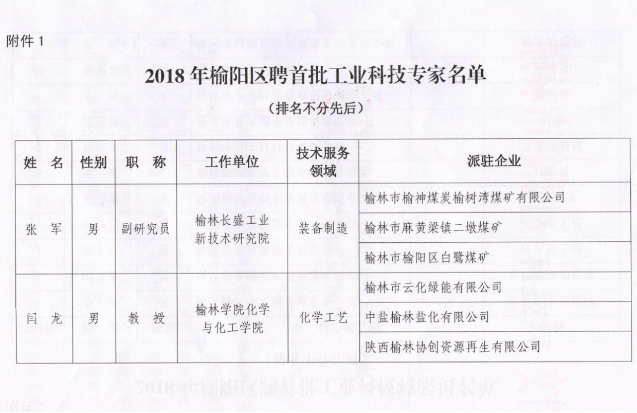關于聘請榆陽區(qū)首批工業(yè)科技專家及工業(yè)科技特派員