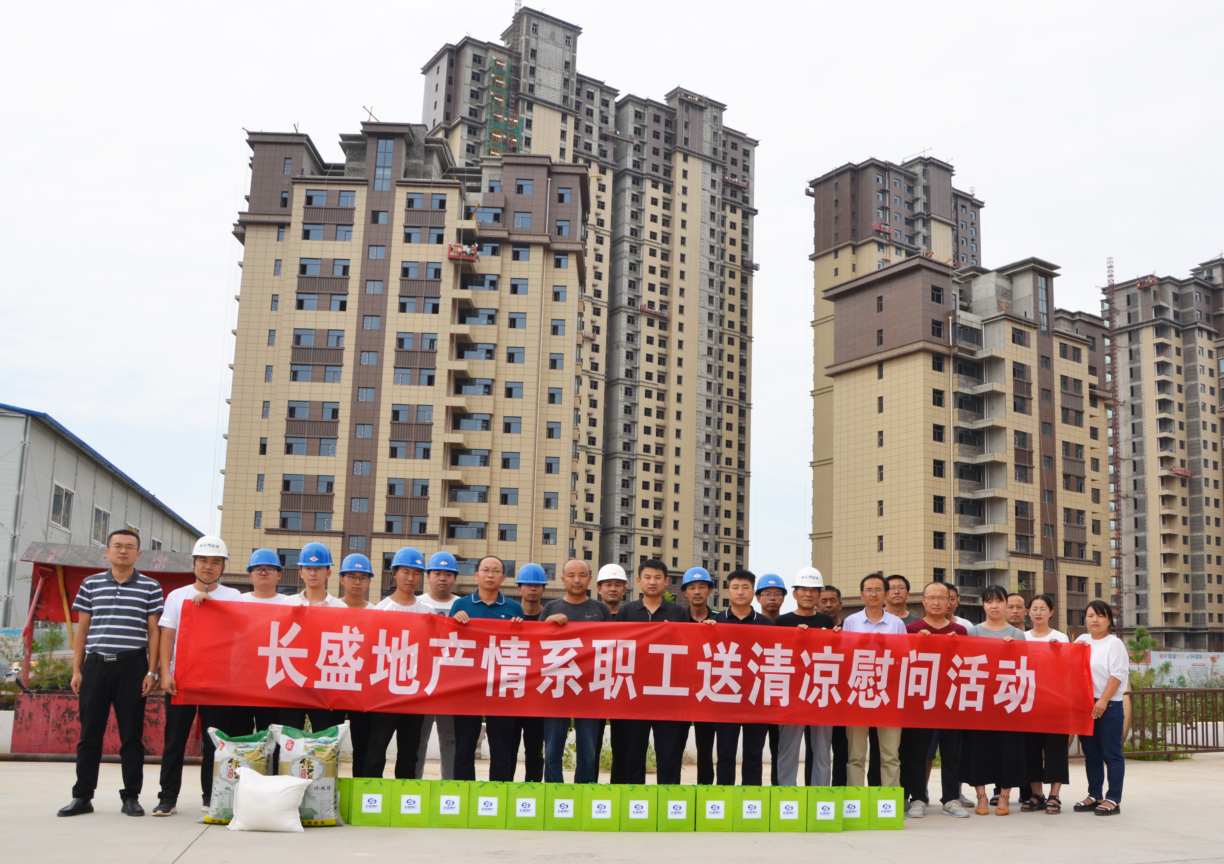 立秋未入秋,高溫仍持續(xù)。8月11日,長盛地產(chǎn)公司總經(jīng)理徐遼飛、副總經(jīng)理劉世斌、總工程師曹光軍及相關(guān)部門負責人一行走進公司盛景蘭亭項目部、流水馨城項目部和盛翔華庭項目部,開展“情系職工送清涼”慰問活動,為一線職工送上了親切的問候和防暑降溫物品,也為這個高溫伏天帶來了絲絲清涼。