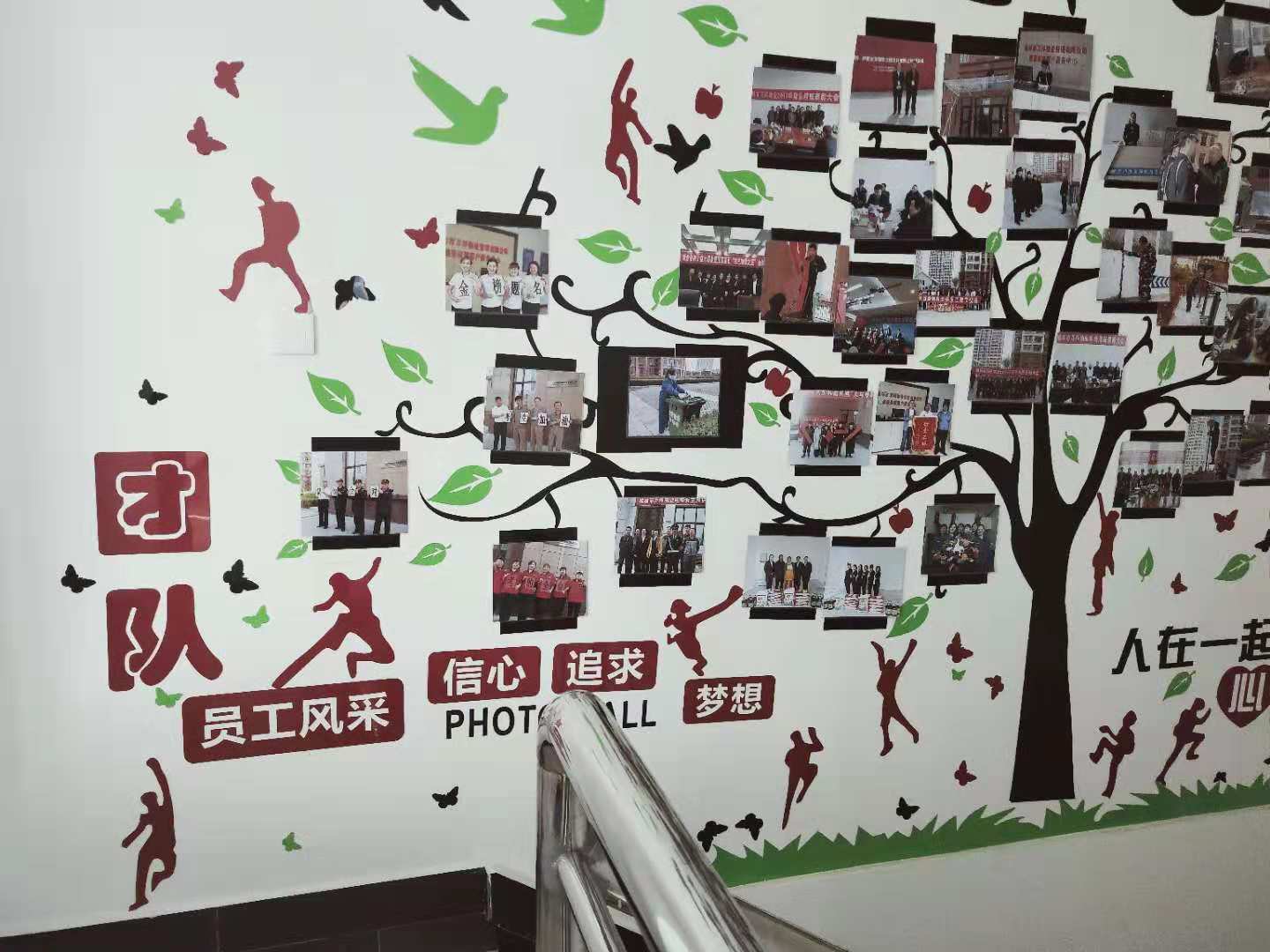 為加強公司企業(yè)文化管理,培育良好的企業(yè)文化氛圍,促進企業(yè)文化建設工作健康有序發(fā)展, 2018年9月,我們選用亞克力材料的墻貼“成功的階梯”,激勵員工激發(fā)潛能,積極向上; 10月建立起照片墻,把我們的團隊、員工風采照片展現(xiàn)在這面有限的墻上。 |