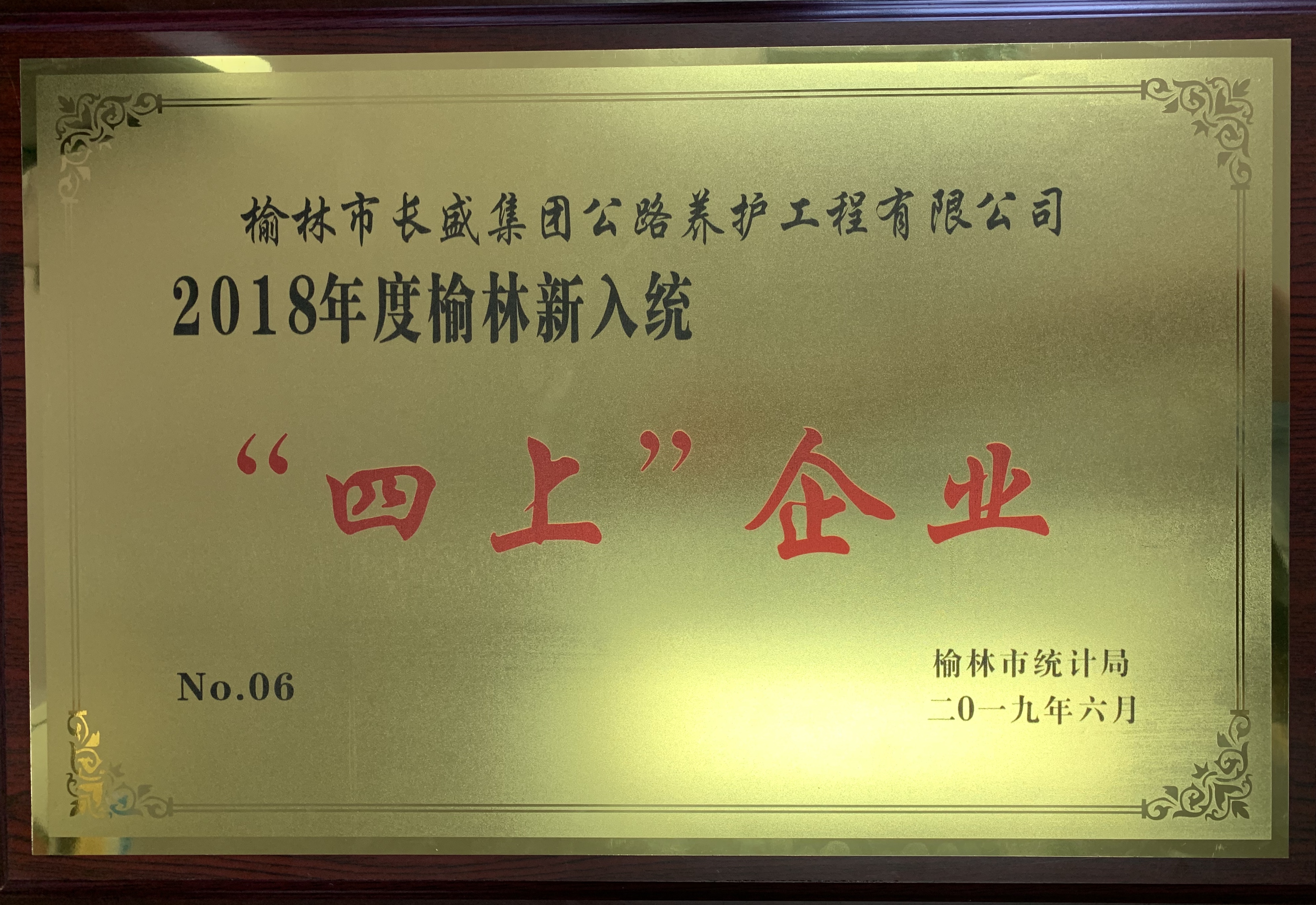 “榆林市長盛集團公路養(yǎng)護工程有限公司”獲評“2018年度榆林新入統(tǒng)四上企業(yè)”