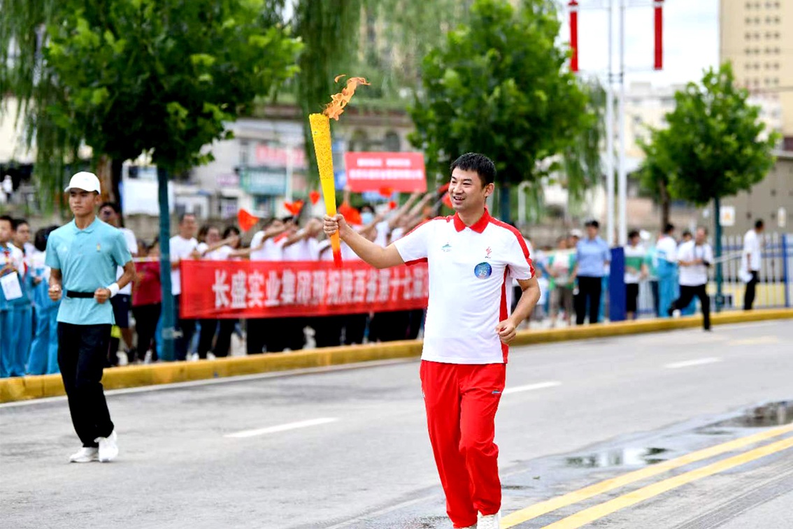 激情七月,放飛夢(mèng)想。7月22日下午,陜西省第十七屆運(yùn)動(dòng)會(huì)火炬?zhèn)鬟f第九站在清澗縣舉行。長(zhǎng)盛集團(tuán)副總經(jīng)理徐遼飛以昂揚(yáng)奮進(jìn)的姿態(tài)展現(xiàn)了勇立潮頭、爭(zhēng)創(chuàng)一流的長(zhǎng)盛風(fēng)采,圓滿地完成了該站第29棒的火炬?zhèn)鬟f。