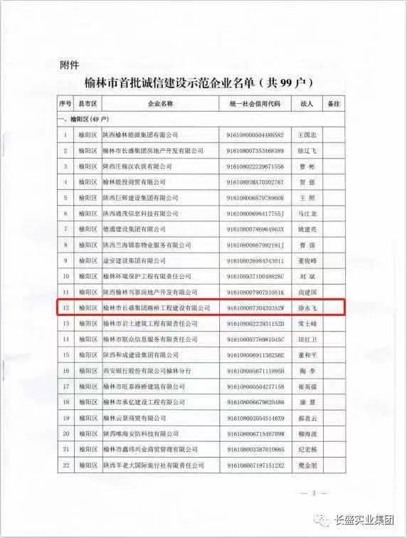 日前,中共榆林市委宣傳部、榆林市發(fā)展和改革委員會(huì)、榆林市社會(huì)信用工作領(lǐng)導(dǎo)小組辦公室聯(lián)合公布了99家榆林市首批誠(chéng)信建設(shè)示范企業(yè)名單,榆林市長(zhǎng)盛集團(tuán)路橋工程建設(shè)有限公司榮據(jù)一席。