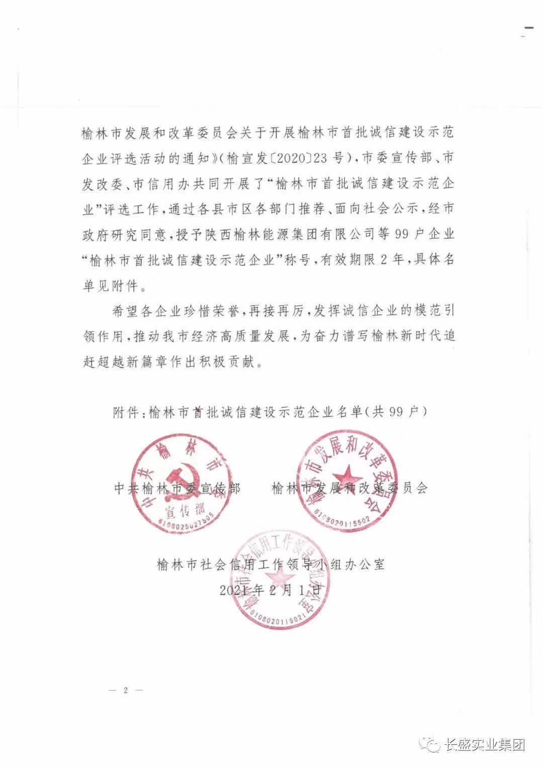 根據(jù)《陜西省企業(yè)信用建設(shè)示范創(chuàng)建工作方案》(陜發(fā)改財(cái)金〔2019〕1706號(hào))和《中共榆林市委宣傳部 榆林市發(fā)展和改革委員會(huì)關(guān)于開展榆林市首批誠(chéng)信建設(shè)示范企業(yè)評(píng)選活動(dòng)的通知》(榆宣發(fā)〔2020〕23號(hào)),中共榆林市委宣傳部、榆林市發(fā)展和改革委員會(huì)、榆林市社會(huì)信用工作領(lǐng)導(dǎo)小組辦公室組織開展了“榆林市首批誠(chéng)信建設(shè)示范企業(yè)”評(píng)選工作,經(jīng)各縣市區(qū)政府,市工信局、市市場(chǎng)監(jiān)管局、市生態(tài)環(huán)境局、市應(yīng)急局等行業(yè)主管部門初步審核,同時(shí)向市中級(jí)法院、公安局、稅務(wù)局等相關(guān)部門征求意見(jiàn),專家評(píng)審委員會(huì)評(píng)審,并通過(guò)榆林市信用協(xié)會(huì)工作小組嚴(yán)格評(píng)審和實(shí)地考察驗(yàn)收確定。經(jīng)市政府研究同意,擬授予陜西榆林能源集團(tuán)有限公司等99戶企業(yè)“榆林市首批誠(chéng)信建設(shè)示范企業(yè)”的稱號(hào)。