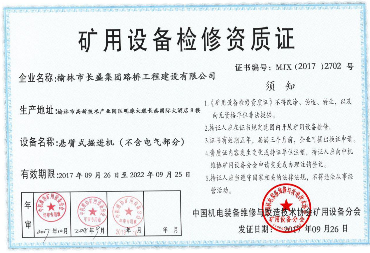 礦用設(shè)備檢修資質(zhì)