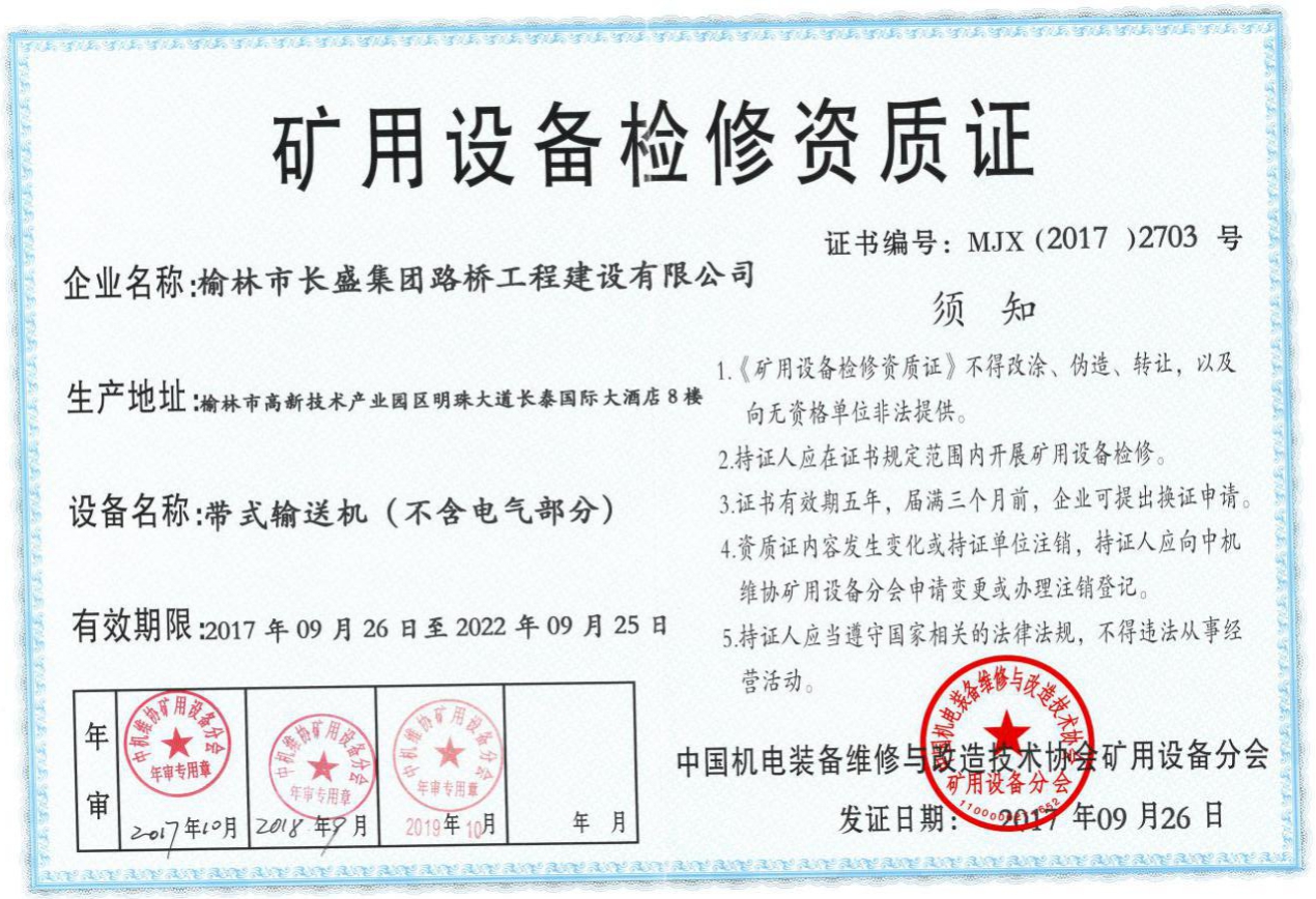 礦用設(shè)備檢修資質(zhì)