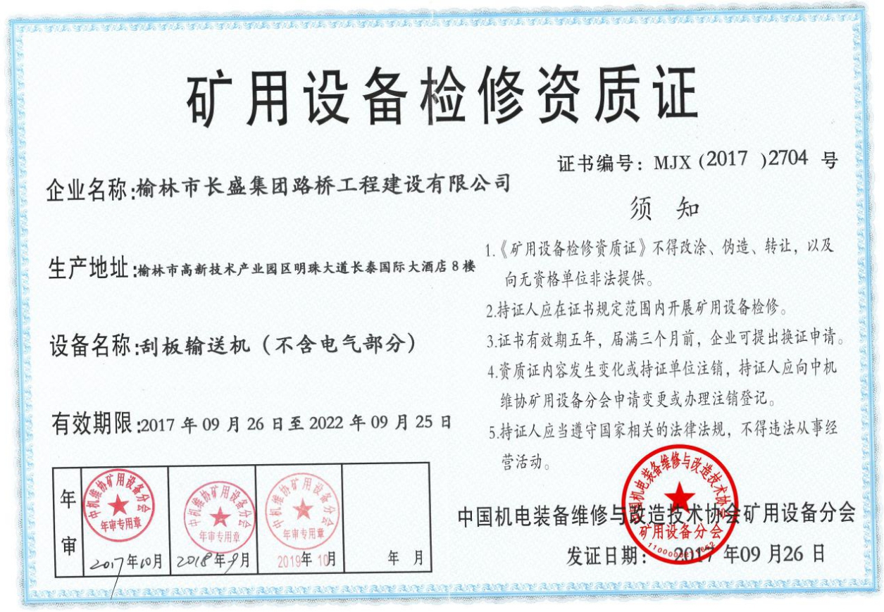 礦用設(shè)備檢修資質(zhì)-刮板輸送機(jī)