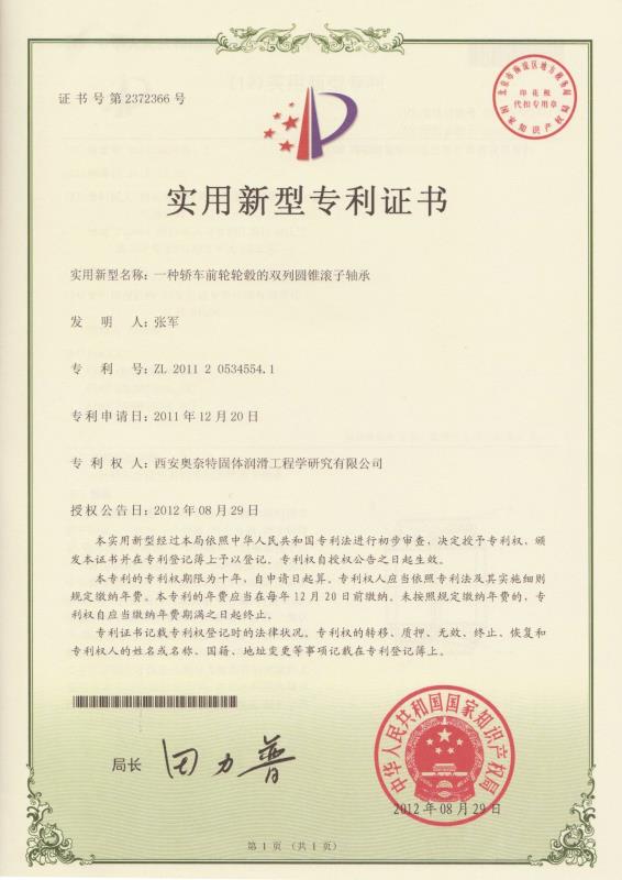 專利名稱:一種轎車前輪輪轂的雙列圓錐滾子軸承