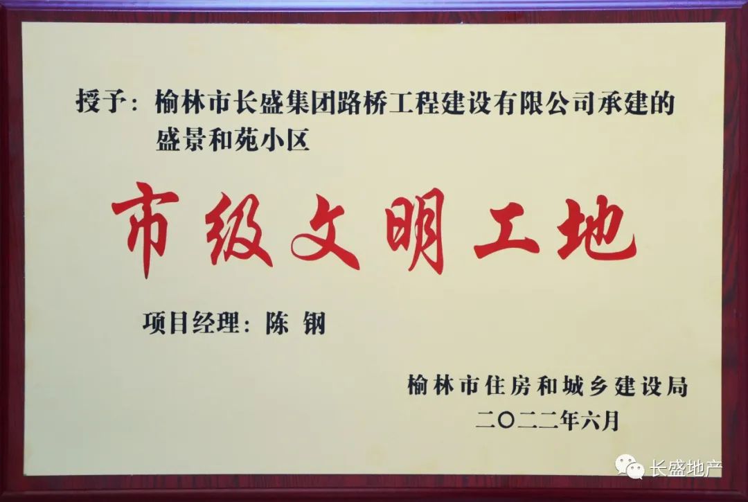近日,從榆林市住房和城鄉(xiāng)建設(shè)局傳來(lái)喜訊,榆林市長(zhǎng)盛集團(tuán)房地產(chǎn)開(kāi)發(fā)有限公司盛景和苑項(xiàng)目被授予2022年度“市級(jí)文明工地”榮譽(yù)稱號(hào)。