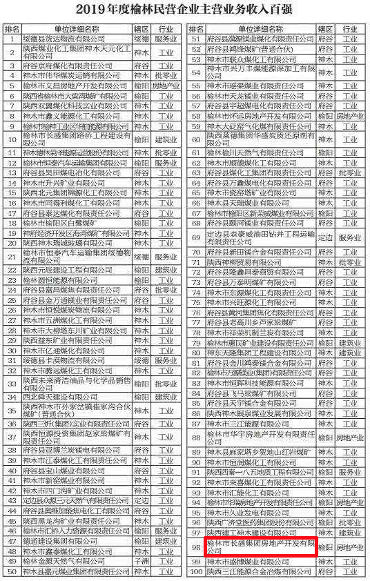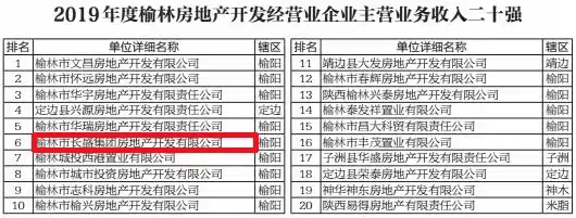 長(zhǎng)盛地產(chǎn)公司入榜榆林市“房地產(chǎn)企業(yè)主營(yíng)業(yè)務(wù)收入二十強(qiáng)”和“民營(yíng)企業(yè)主營(yíng)業(yè)務(wù)收入百?gòu)?qiáng)”