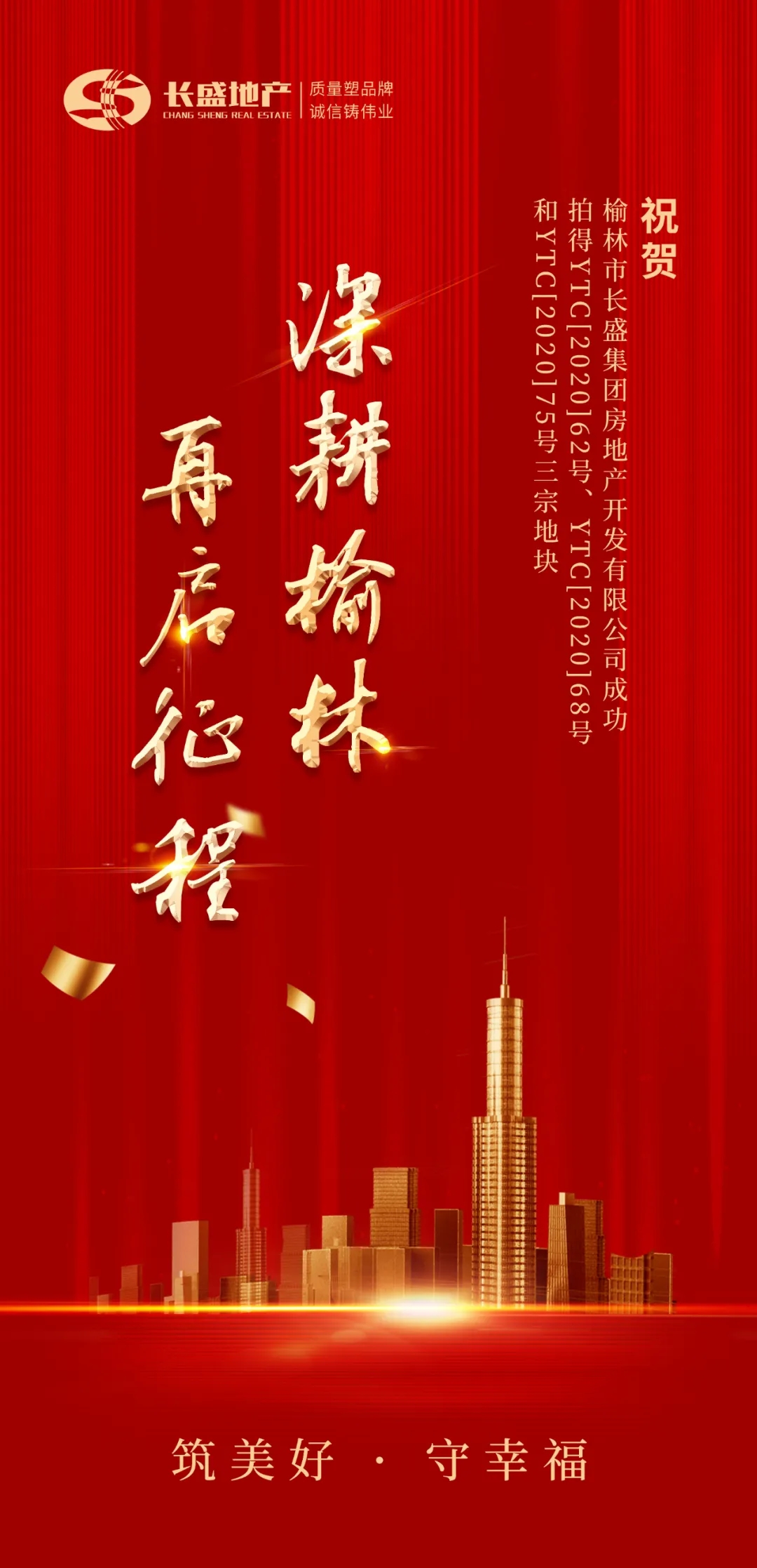近日,榆林市長盛集團房地產開發(fā)有限公司成功拍得YTC[2020]62號、YTC[2020]68號和YTC[2020]75號三宗地塊。
