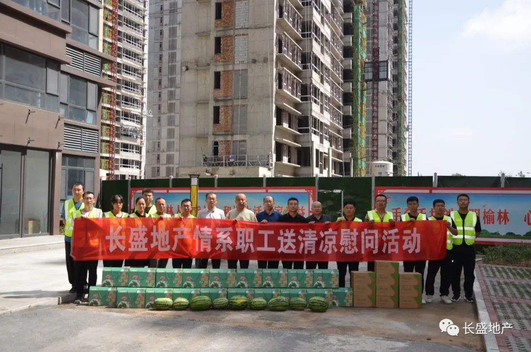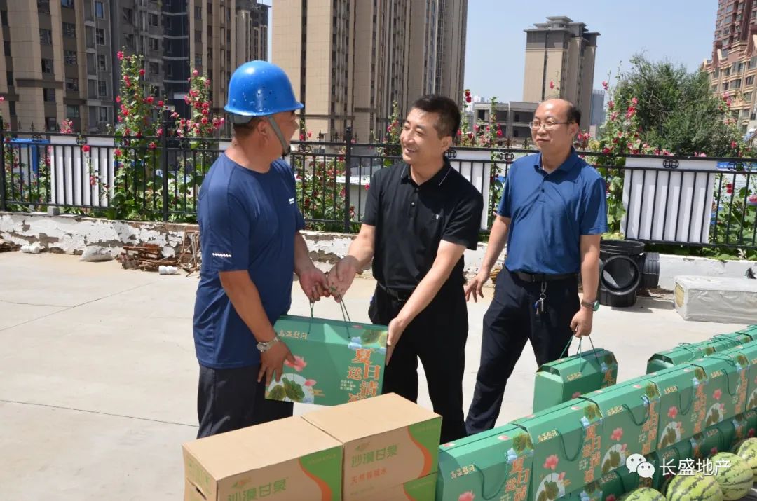 7月13日,榆林市長盛集團房地產(chǎn)開發(fā)有限公司開展2022年度“情系職工送清涼”慰問活動,看望慰問榆林區(qū)內(nèi)在建項目一線員工,為他們送去小米、綠豆、白糖、西瓜等防暑降溫物品。