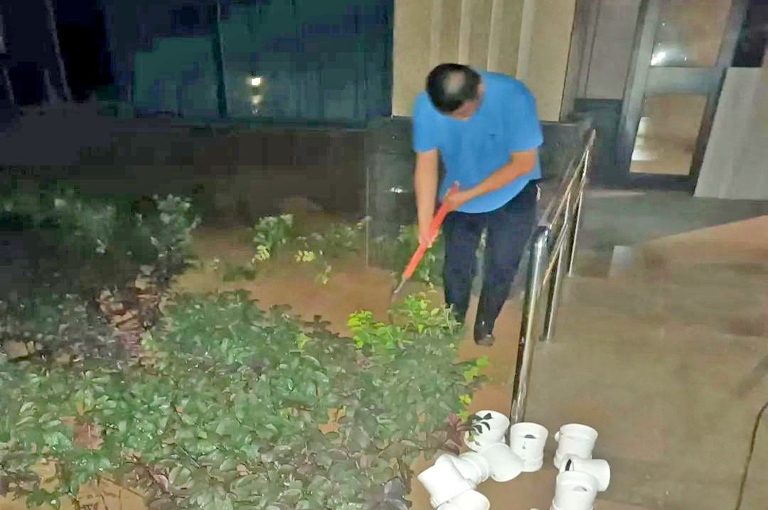 我們用實際行動背負(fù)起園區(qū)防汛的安全職責(zé)