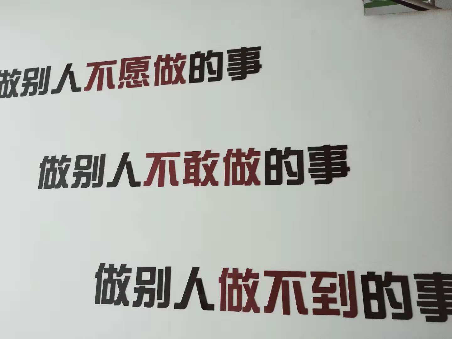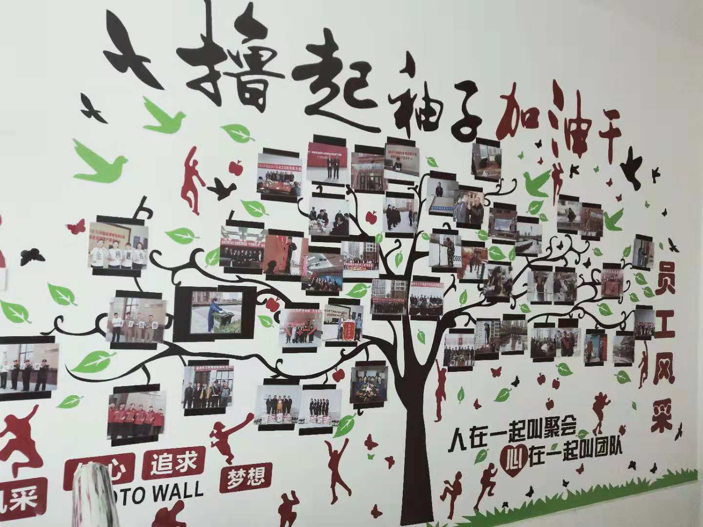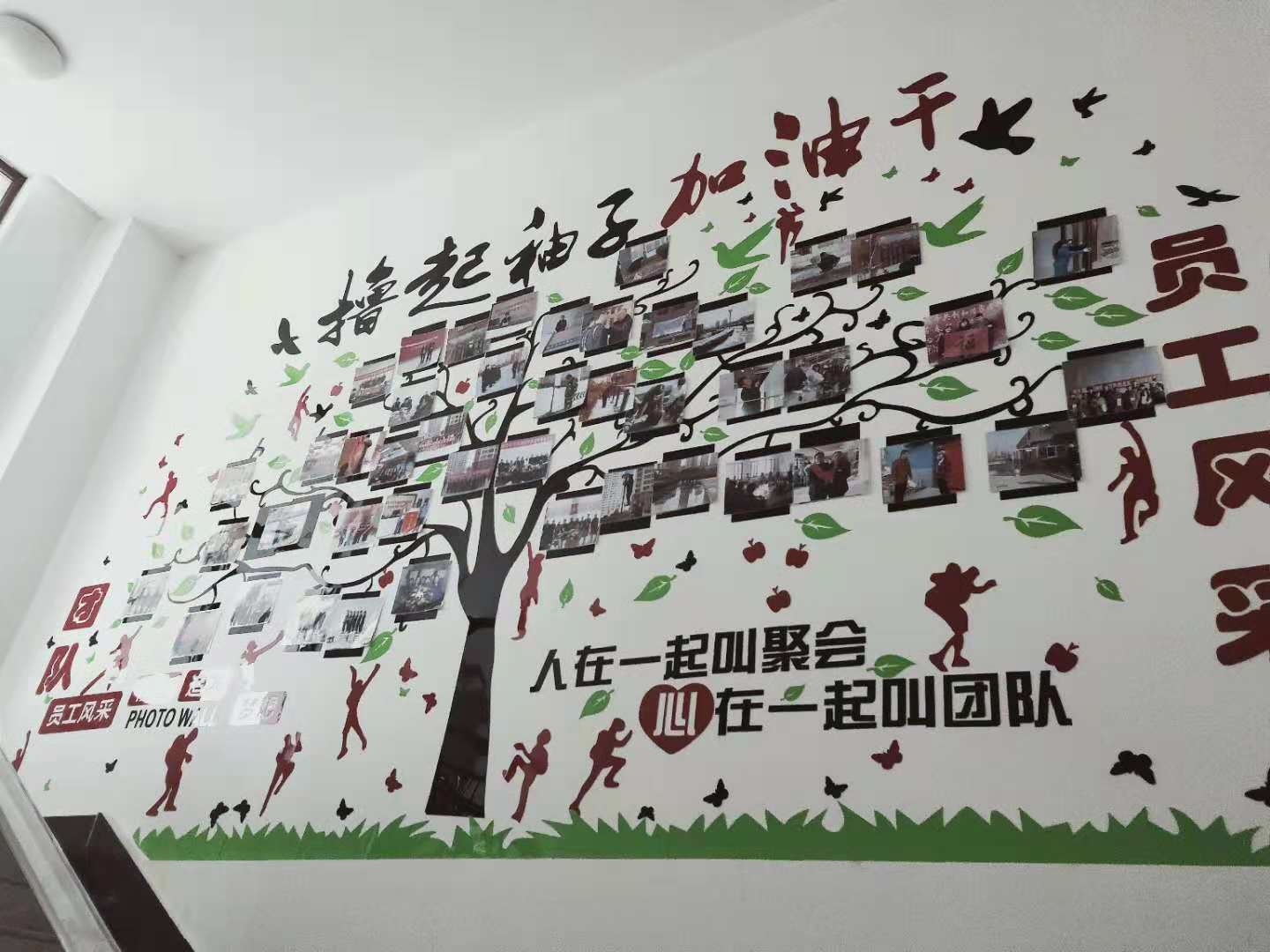 為加強公司企業(yè)文化管理,培育良好的企業(yè)文化氛圍,促進企業(yè)文化建設工作健康有序發(fā)展, 2018年9月,我們選用亞克力材料的墻貼“成功的階梯”,激勵員工激發(fā)潛能,積極向上; 10月建立起照片墻,把我們的團隊、員工風采照片展現(xiàn)在這面有限的墻上。 |