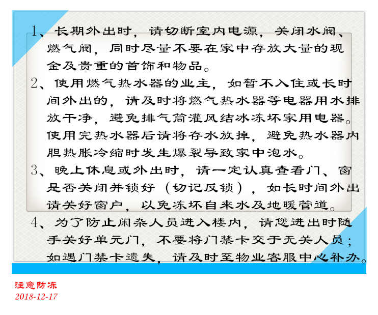 共同做好防火、防盜、防凍的安全預(yù)防工作!