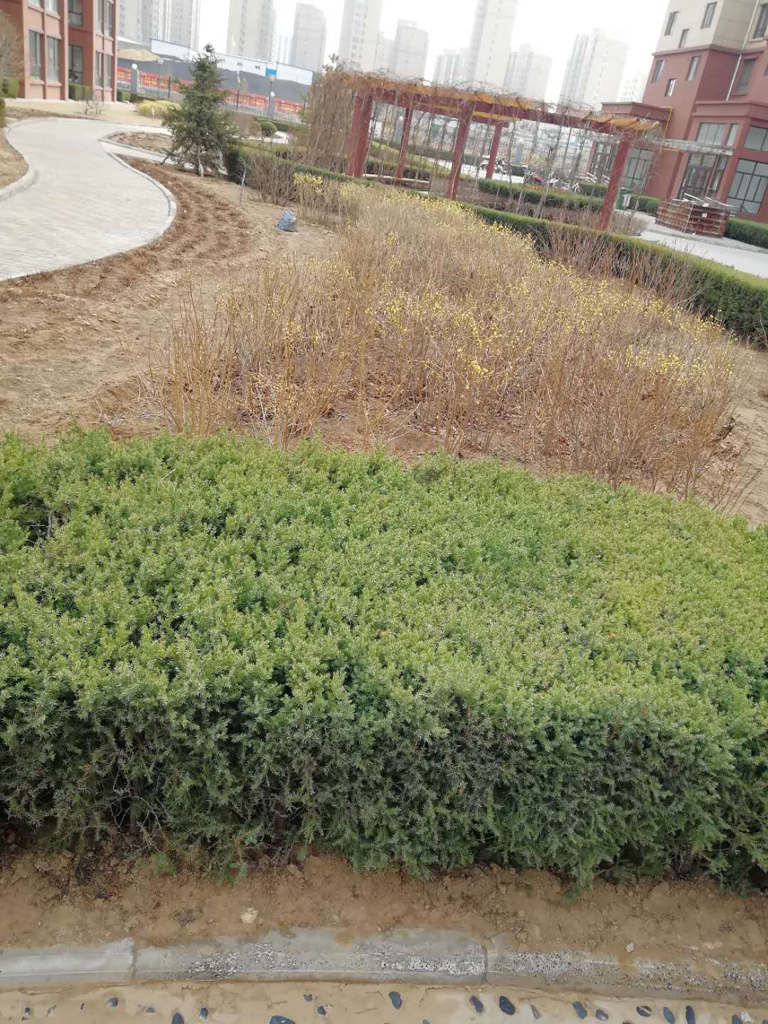 陽春三月,萬物復(fù)蘇,綠化工作在春季的養(yǎng)護(hù)工作是否到位,對全年的綠化工作來說都是至關(guān)重要的。我公司所服務(wù)的盛景家苑小區(qū)近期對園區(qū)內(nèi)的綠化苗木加強(qiáng)日常養(yǎng)護(hù),抓住早春修剪的有利時(shí)機(jī),對枯枝、病蟲枝、過密枝進(jìn)行科學(xué)修剪,合理整形,全面提升綠化景觀效果。對部分已解凍的土地進(jìn)行灌溉,促進(jìn)樹木、草坪發(fā)芽,返青。同時(shí),投入人力、物力提前做好苗木采買工作,對裸露土地進(jìn)行補(bǔ)植補(bǔ)栽。
