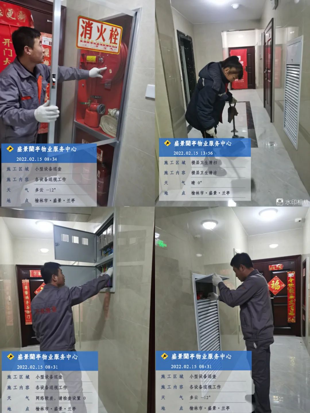 對樓層消防設(shè)施進(jìn)行巡查,保證消防設(shè)備正常運行!